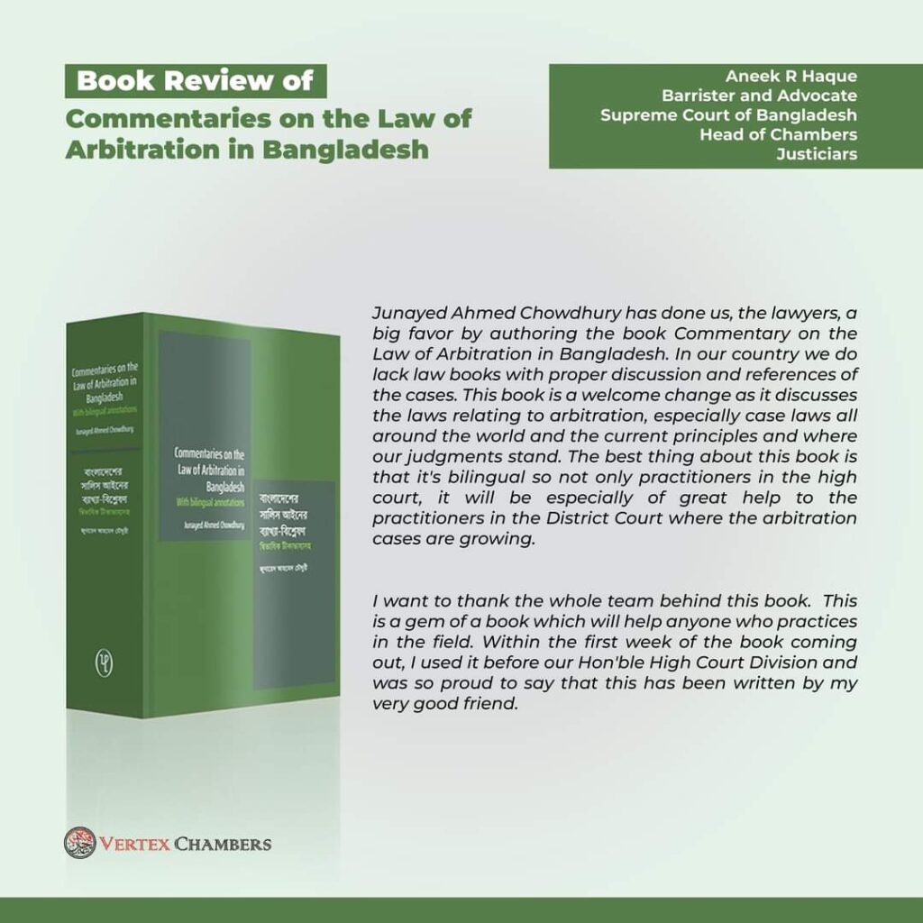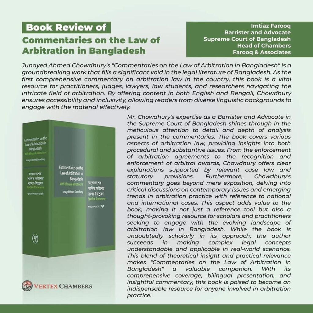 26.02.2024: Four raving reviews about the “Commentaries on the Law of Arbitration in Bangladesh” by colleagues and peers of the legal fraternity.
